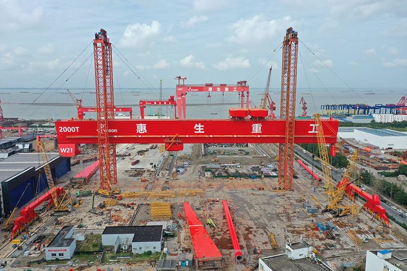2000t×200m造船門式起重機(jī)服務(wù)于惠生海工南通基地的船塢擴(kuò)建工程,南通基地是惠生海工主要的浮式設(shè)備生產(chǎn)建造基地。船塢擴(kuò)建工作是整個(gè)南通基地改造項(xiàng)目的重中之重,對(duì)惠生海工增強(qiáng)自身實(shí)力,升級(jí)服務(wù)能力具有戰(zhàn)略意義。未來(lái)改造完成后,惠生海工將能夠?yàn)槿蚩蛻舸笮汀⒊笮透∈椒桨傅腅PCIC總包服務(wù)提供更多選擇。