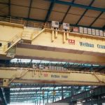 YB型板坯夾鉗起重機是搬運板坯特別是高溫板坯的專用設備,用來在連鑄出坯跨生產線搬運高溫板坯到鋼坯庫、加熱爐或在成品庫搬運常溫板坯,進行堆垛,裝卸車輛作業,可吊運厚度150mm以上的板坯或大方坯,吊運高溫板坯時溫度可在650℃以上。